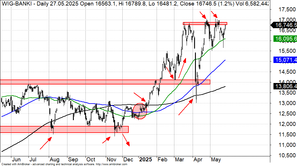 WIG-Banki ponownie zbliża się do oporu