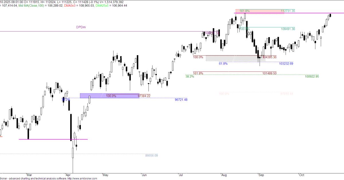 W poszukiwaniu sygnałów - 25 października 2025 - Duże indeksy bliskie wejścia w tygodniowy trend wzrostowy.