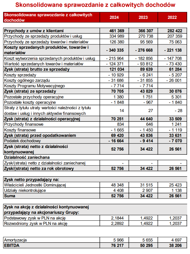 Poprawił się także poziom gotówki – na koniec 2024 roku w kasie spółki znajdowało się 116,5 mln zł wobec 71,1 mln zł rok wcześniej.
