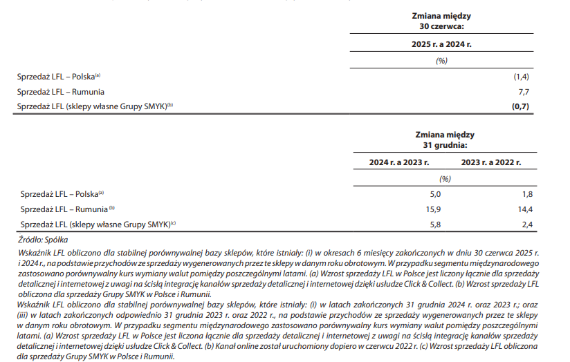 Zarząd widzi szansę w rosnących realnych dochodach i wydatkach konsumpcyjnych w Polsce oraz Rumunii, co wspiera popyt na odzież, zabawki i akcesoria dla dzieci mimo słabszej demografii. W Polsce oczekiwany jest wzrost realnych wydatków konsumpcyjnych ok. 4% rocznie w latach 2025–2029, a w Rumunii dynamika dochodów i konsumpcji jest jeszcze wyższa. Według zarządu, wymienione czynniki tworzą solidne tło do dalszej ekspansji Smyka i stopniowego zwiększania wartości koszyka zakupowego rodzin.