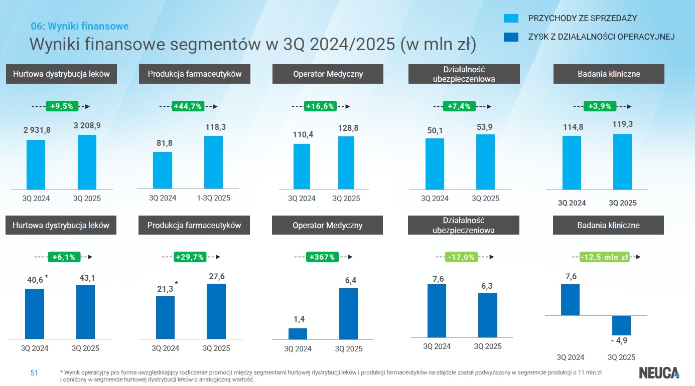 Wyniki finansowe segmentów Neuca w 3 kwartale 2025 roku