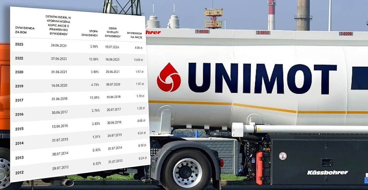 Unimot ma już ugruntowaną historię wypłat dywidend – pierwszą wypłacił w 2013 roku, a od tamtej pory kontynuuje tę praktykę z kilkoma przerwami. Co istotne, poziom dywidend systematycznie rósł wraz z wynikami finansowymi spółki i sprzyjającą koniunkturą na rynku energii.