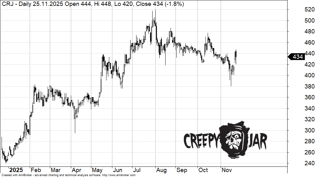 Kurs akcji Creepy Jar od początku 2025