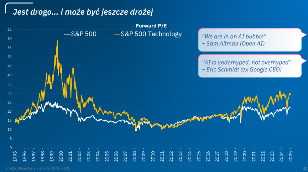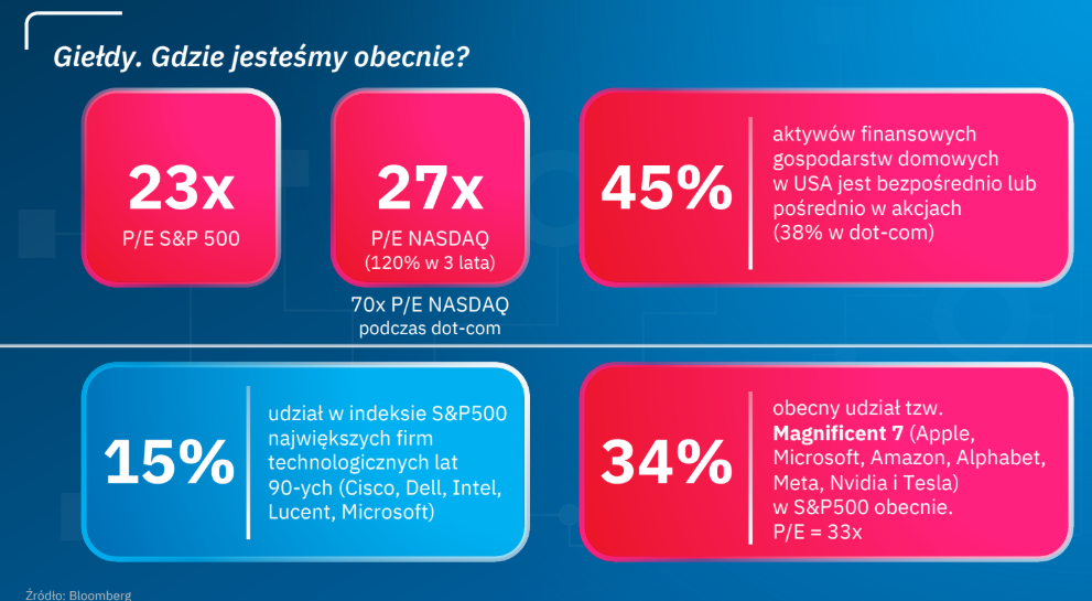 Z drugiej strony widoczna jest spora doza sceptycyzmu co do możliwości sfinansowania tak dużych nakładów oraz osiągnięcie odpowiedniej stopy zwrotu z inwestycji. Podobna skala narzekania była widoczna rok czy dwa lata temu, jednak tysiące talentów pracujących nad technologią AI regularnie zaskakuje malkontentów. Dla wielu inwestorów aktualny stan rynku może się wydawać nieracjonalny, co wzmacnia przekonanie o ostrożnym podejściu do rynku i niepartycypowania w hossie” - ocenił Witczak.