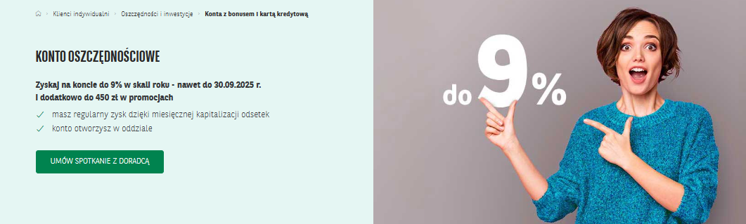 | Konto Lokacyjne | 9,00% | Do 30.09.2025 | 25 000,00 zł | Promocja dla nowych klientów, którzy muszą posiadać kartę kredytową. |