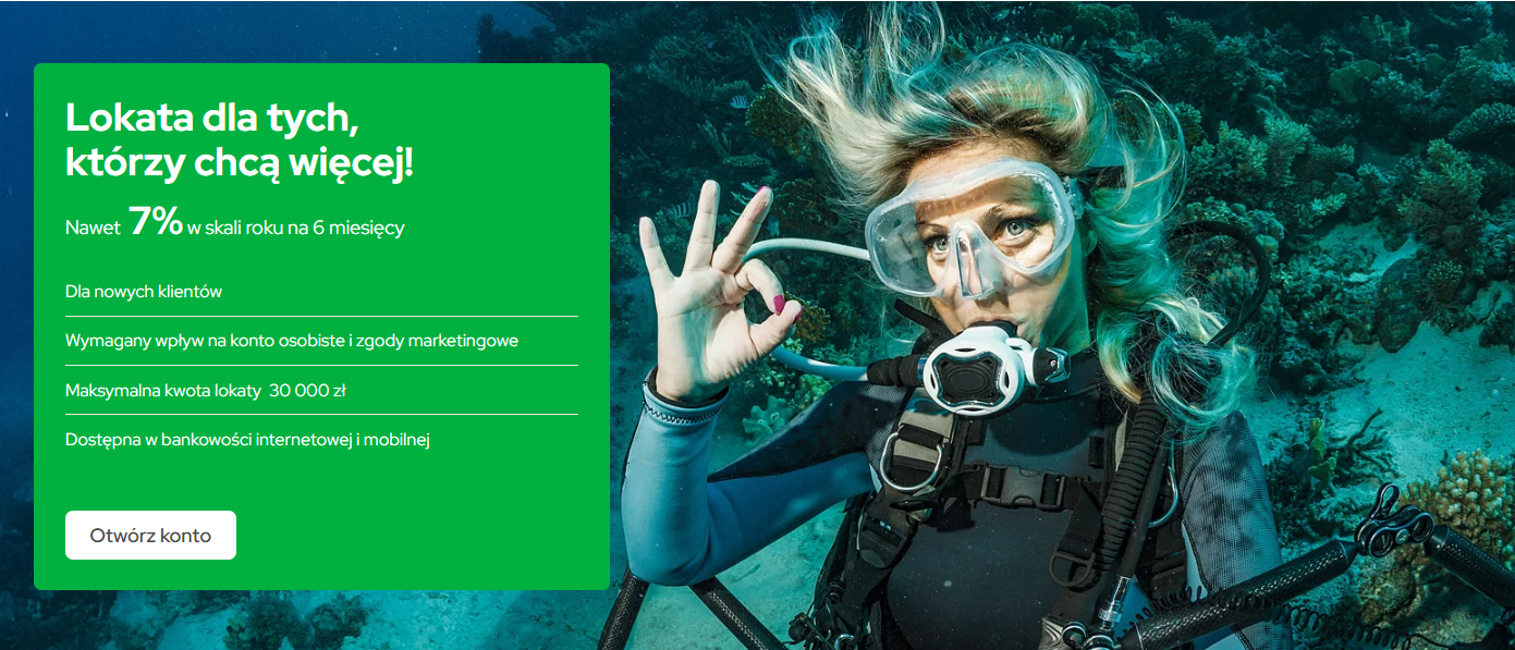 | Lokata promocyjna | 7,00% | 3 miesiące | 25 tys. zł | Dodatkowe wymagania dla atrakcyjnego oprocentowania |