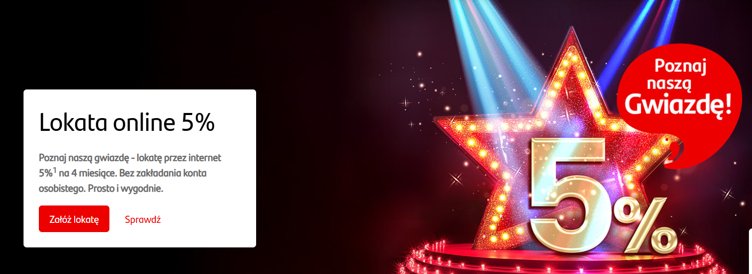 | Lokata mobilna | 5,00% | 100 dni | 50 000,00 zł | Wymagane jest posiadanie aplikacji mobilnej. |