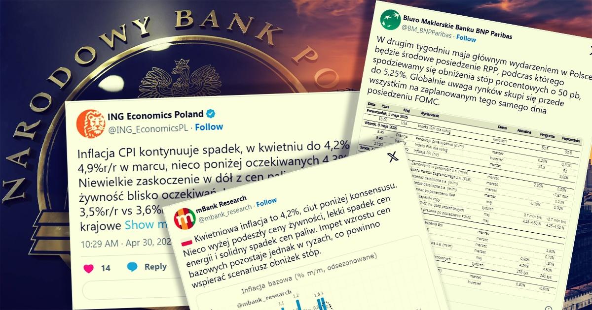 Majowe posiedzenie Rady Polityki Pieniężnej (RPP) zbliża się wielkimi krokami. Rynek oczekuje przełomowej decyzji o obniżce stóp procentowych. Ekonomiści oraz członkowie Rady prognozują, że cięcie wyniesie od 0,25 do 0,50 pkt proc. Jedną z kluczowych przesłanek jest szacunkowy odczyt inflacji za kwiecień, który wyniósł 4,2 proc. r/r. Nie można wykluczyć dalszych obniżek stóp NBP w kolejnych miesiącach.