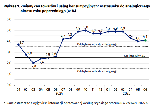 Główny Urząd Statystyczny (GUS) opublikował wstępny szacunek cen towarów i usług w czerwcu 2025 roku. Wskaźnik CPI delikatnie w górę.