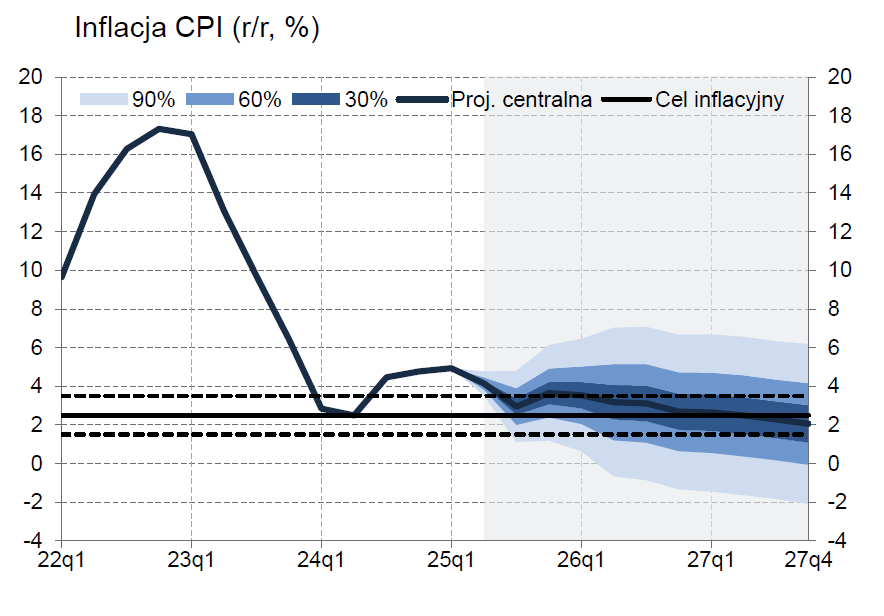 Nowe prognozy NBP przewidują spadek inflacji i umiarkowany wzrost PKB