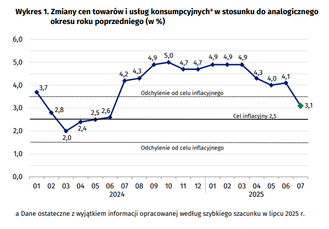 Wstępny odczyt inflacji za lipiec 2025 roku. Jesteśmy w celu NBP