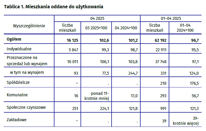 Budownictwo mieszkaniowe w okresie styczeń-kwiecień 2025 r. Spadła liczba rozpoczętych budów, wydanych pozwoleń oraz oddanych mieszkań