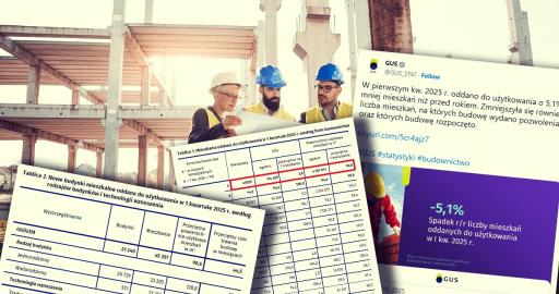 GUS opublikował dane o budownictwie mieszkaniowym w okresie od stycznia do kwietnia br. Do końca kwietnia deweloperzy uzyskali o 25 proc. mniej pozwoleń na budowę niż rok wcześniej, o 11,4 proc. spadła również liczba mieszkań, których budowę rozpoczęto. GUS szacuje, że na koniec kwietnia 2025 roku w budowie pozostawało 848,3 tys. mieszkań, to o 3,7 proc. więcej niż rok wcześniej.