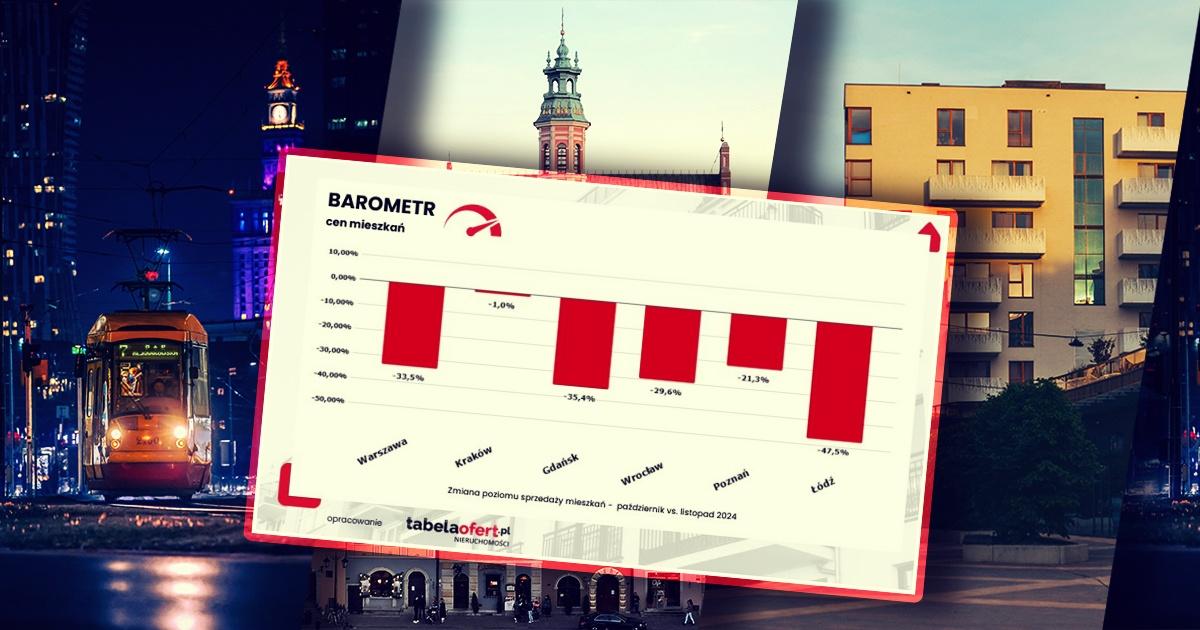 Według najnowszego barometru cen mieszkań, przygotowanego przez portal tabelaofert.pl, sprzedaż mieszkań w listopadzie drastycznie spadła. Nie pomogły promocje i atrakcyjne oferty deweloperów.