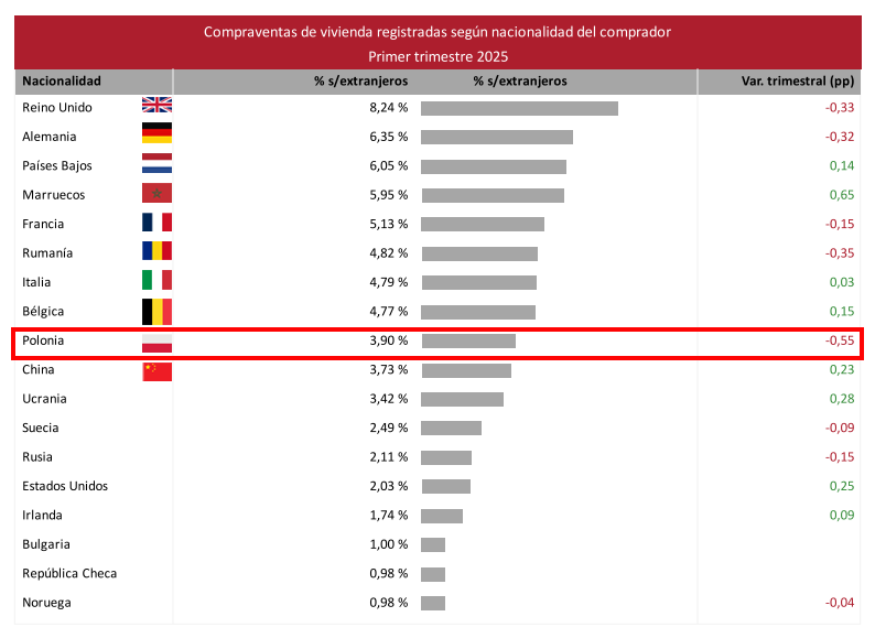 Pozytywny trend utrzymuje się także w 2025 roku. W pierwszym kwartale zawarto 998 transakcji, a udział Polaków w hiszpańskim rynku nieruchomości wyniósł 3,9 proc. Dzięki temu Polska utrzymała 9. miejsce w rankingu zagranicznych nabywców.