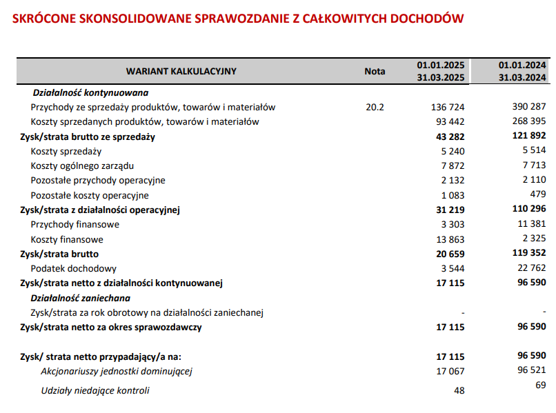 Murapol w I kw. osiągnął 68,6 mln zł zysku netto przypisanego akcjonariuszom jednostki dominującej (w 2024 r. było to 61 mln zł). Skonsolidowane przychody ze sprzedaży wyniosły 330,5 mln zł – w analogicznym okresie ubiegłego roku było to 327,2 mln zł. Marża zysku netto wyniosła 22,1 proc. Przemysław Kromer określa sytuację grupy jako stabilną i bezpieczną.