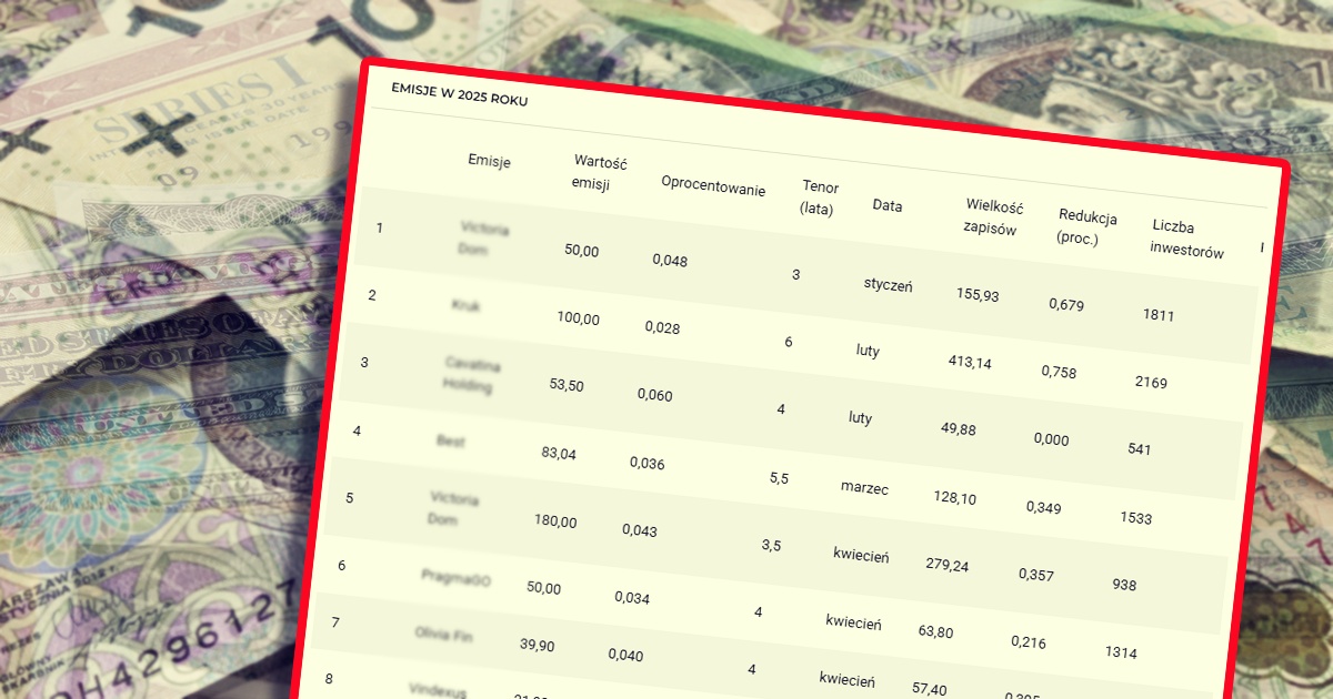 W minionym roku, w analogicznym okresie przeprowadzono 32 emisje – których wartość sięgnęła 1,38 mld zł. W tym wypadku wartość zapisów przekroczyła 3,1 mld zł. Cały 2024 rok zamknięto wartością przeprowadzonych emisji na poziomie 1,959 mld zł.