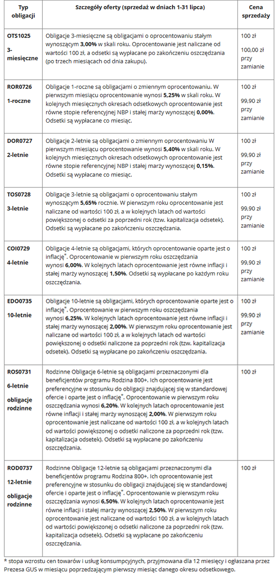 Oferta oszczędnościowych obligacji skarbowych - lipiec 2025 r.