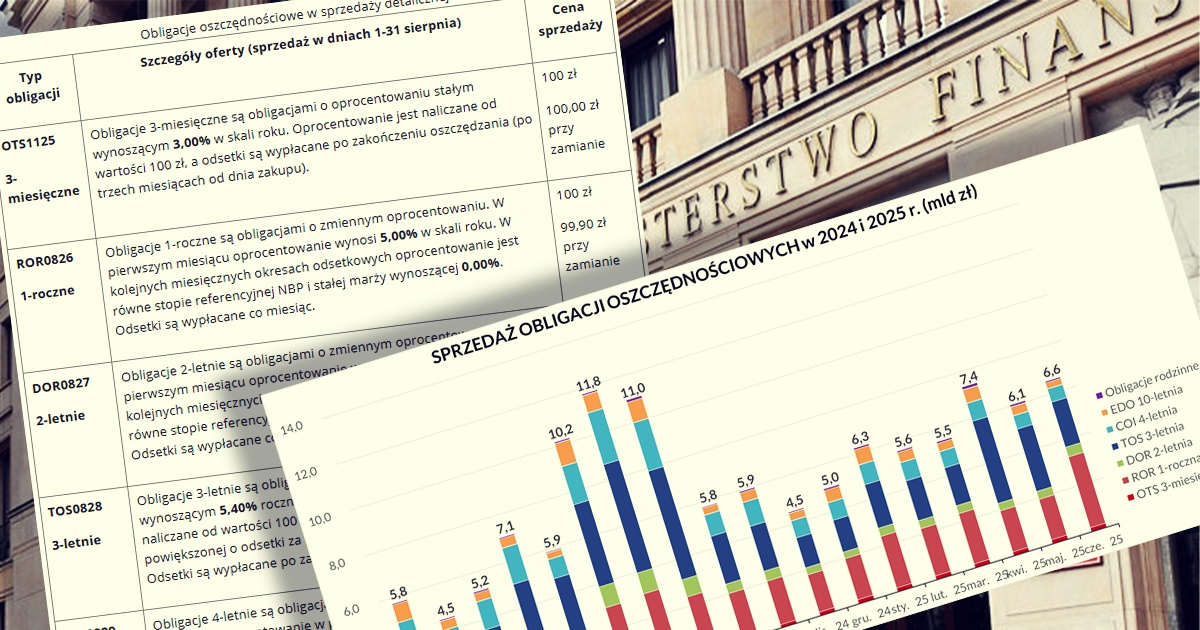Nowe oprocentowanie obligacji Skarbu Państwa w sierpniu 2025. MF przedstawiło ofertę po obniżce stóp procentowych RPP