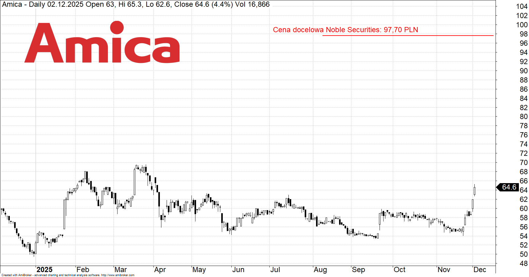 | AMICA (AMC) | Kupuj | 58.70 zł | 97.90 zł | 66.78% | 57.90 zł | Noble Securities | 26-11-2025 | |