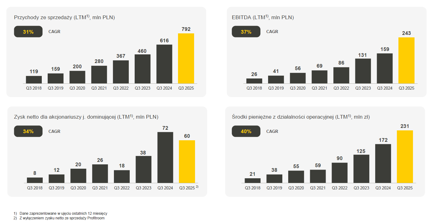 Zarząd podkreśla, że spółka rośnie „w wysokim, ponad 30% tempie” na poziomie przychodów, EBITDA, przepływów operacyjnych i zysku netto.