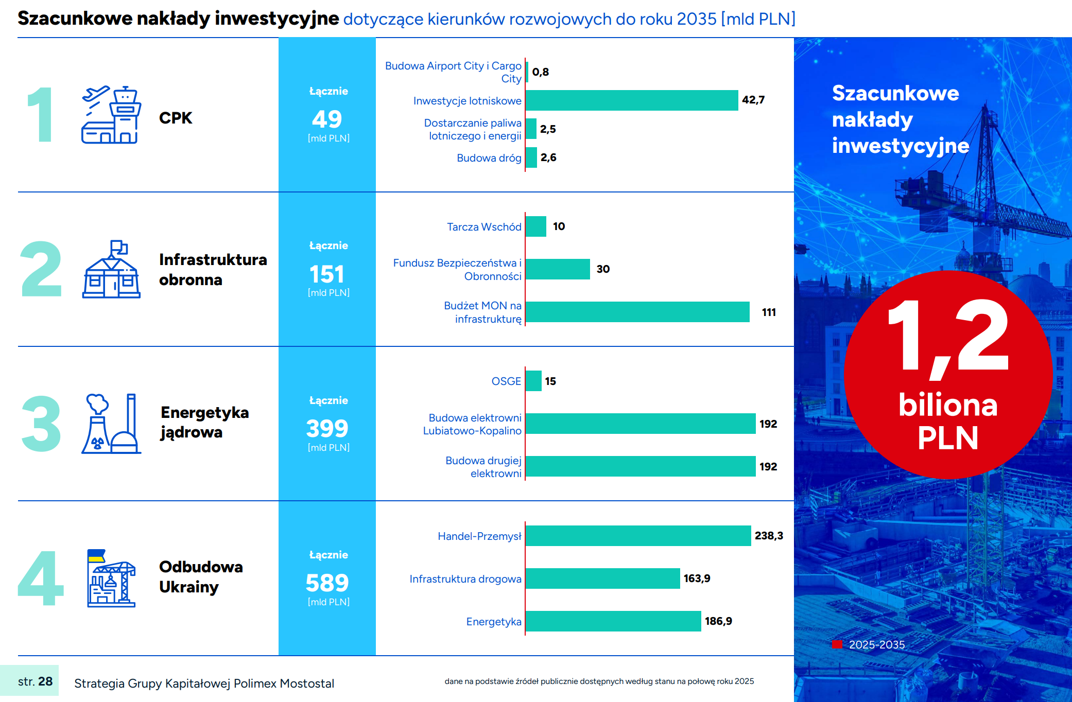 Polimex chce wejść w segmenty premium (energetyka jądrowa, dekarbonizacja, infrastruktura obronna), co oznacza wzrost kompetencji projektowo-inżynieryjnych.