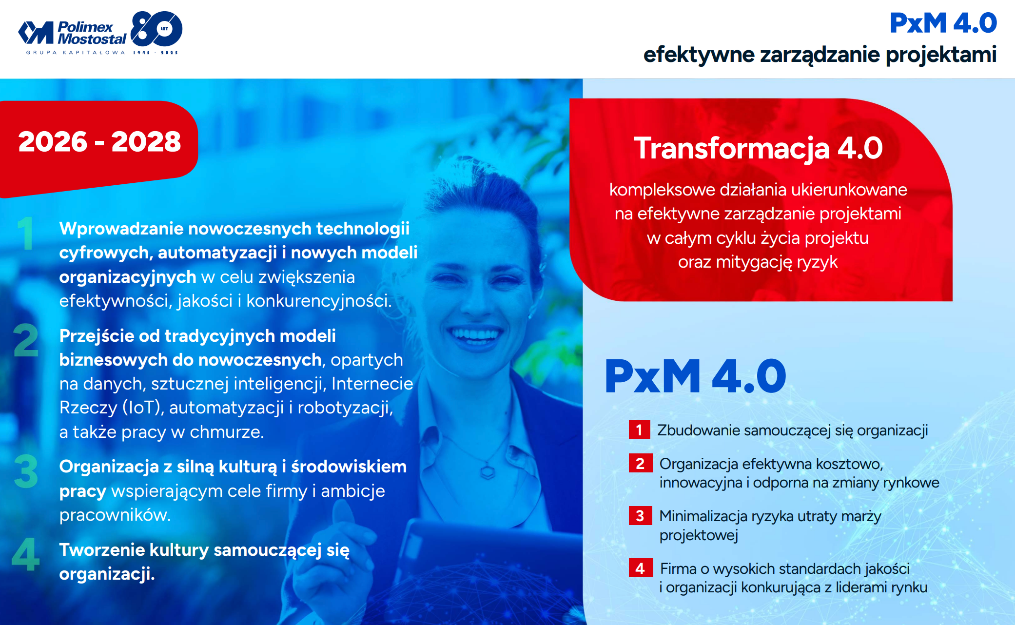 Program „PxM 4.0” zakłada głęboką cyfryzację procesów budowlanych (AI, BIM, IoT, automatyzacja, analiza danych), co — jak na skalę polskiego rynku EPC — jest bardzo progresywnym ruchem.