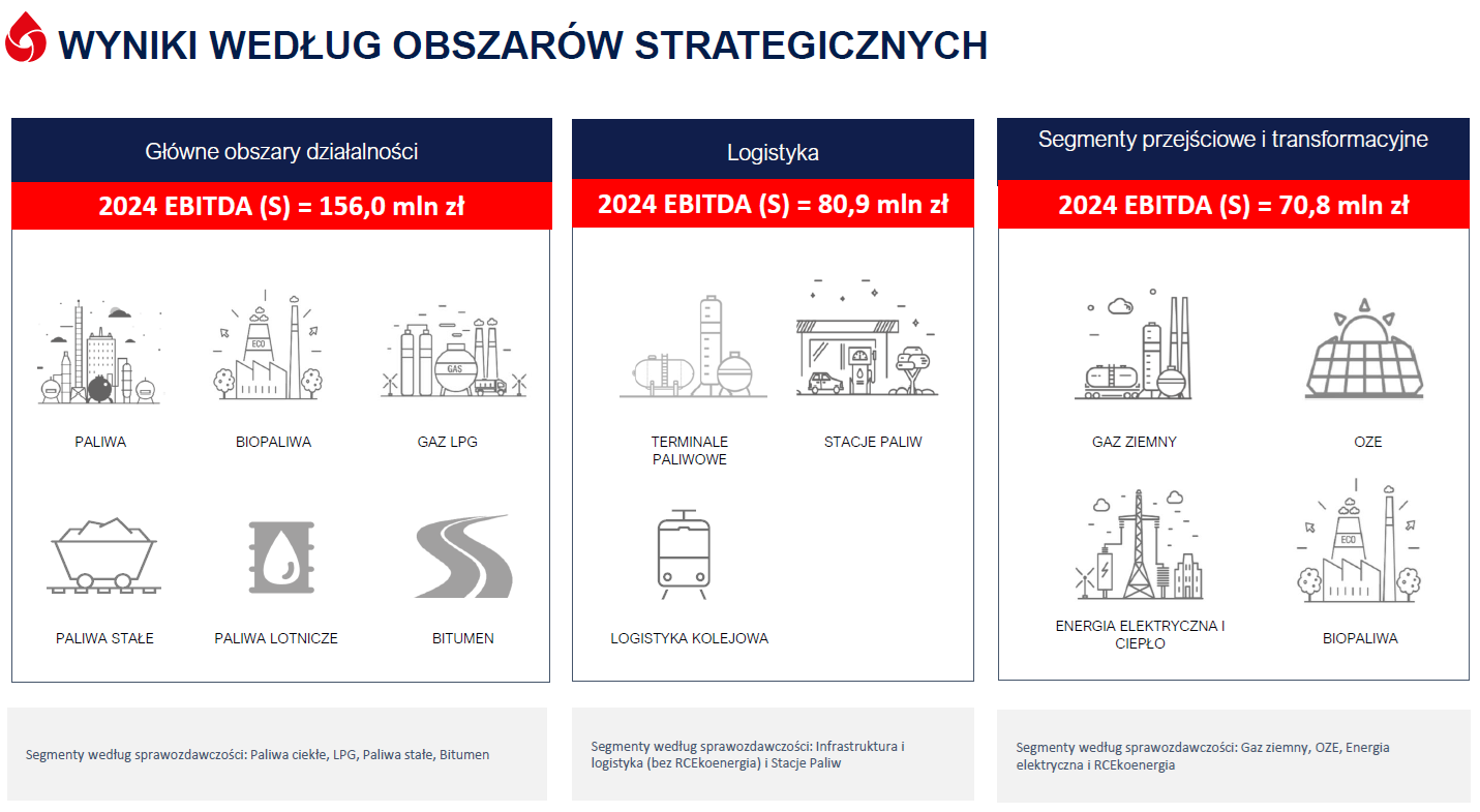 Największy wpływ na wyniki miał dwa segmenty działalności. Segment logistyki został wsparty rozwojem terminali paliwowych oraz kolejowych usług przewozowych. Odnotował imponujący wzrost EBITDA skorygowanej o 71% r/r, osiągając 85,1 mln zł. Jednocześnie działalność bitumenowa – korzystająca z dobrej koniunktury w budownictwie infrastrukturalnym – wygenerowała 105,3 mln zł EBITDA skorygowanej.