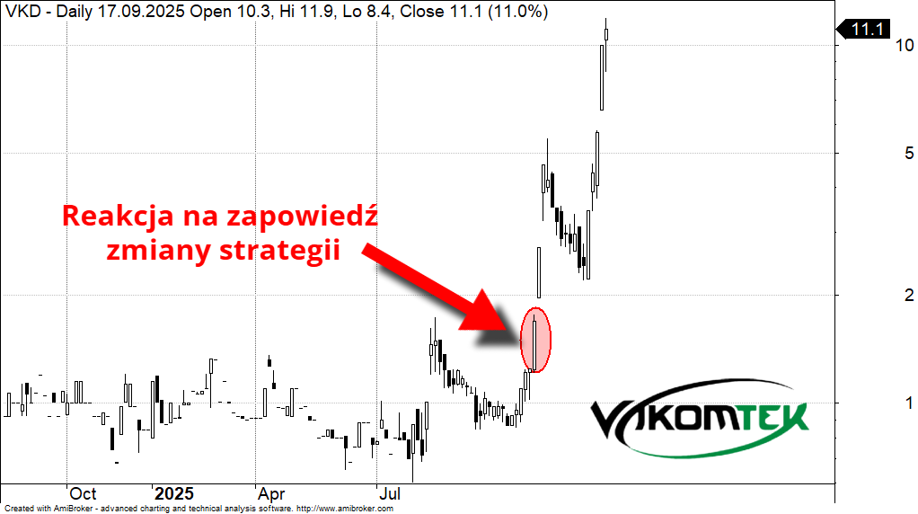 Vakomtek przypomniał o swoim istnieniu na NewConnect pod koniec sierpnia ogłaszając “zmianę strategii i rozszerzenie przedmiotu działalności”. Jak nie drony, to wiadomo.. krypto. Jednak w odróżnieniu od Ice Code Games i Immersion Games nie roztoczono wizji skarbca bitcoina, ale zapowiedziano “koncentrację działalności na dynamicznie rozwijającym się sektorze infrastruktury dla technologii blockchain”, w tym prowadzeniu walidatorów dla perspektywicznych sieci blockchain, stakingu i wykorzystaniu rozwiązań DeFI. Zmieniono oczywiście nazwę na BTCS, czyli odzwierciedlającą nowe “eldorado”. Jakoś przypadkowo taką samą nazwę ma podmiot notowany na Nasdaq o podobnym profilu działalności. Obserwując aktualny amok graczy, którzy potrafią rzucić się akcje ze względu na ticker o tej samej trzyliterowej nazwie jak niegiełdowy producent systemów antydronowych, mogło się do dołożyć do gwałtownych zwyżek kursu dawnego Vakomtek.