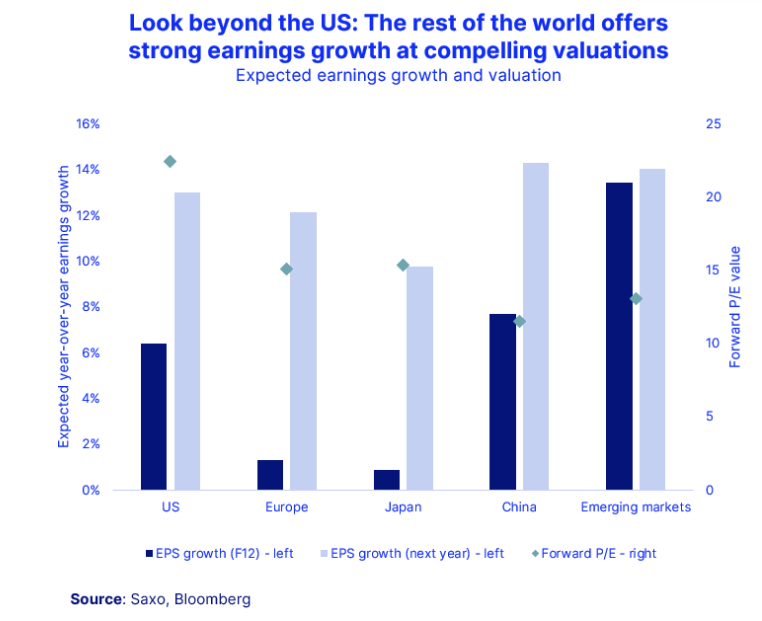 Dla Saxo Banku to sygnał ostrzegawczy. Ryzyko koncentracji, wysokie wyceny oraz niepewność polityczna w USA (m.in. związana z wojną celną prowadzoną przez administrację Trumpa) sprawiają, że inwestorzy powinni szukać alternatyw. Strategia BABA nie oznacza porzucenia amerykańskich akcji, ale – jak podkreśla bank – „pilną potrzebę poszerzenia horyzontu inwestycyjnego”. – „Amerykańskie spółki, zwłaszcza technologiczni giganci, dominowały w portfelach przez ostatnie lata. Dziś jednak ich skrajna dominacja, wysokie wyceny oraz narastająca niepewność polityczna pokazują jasno, dlaczego dywersyfikacja geograficzna poza USA jest nie tylko rozsądna, ale wręcz konieczna” – mówi Jacob Falkencrone, Dyrektor ds. strategii inwestycyjnych Saxo Banku.