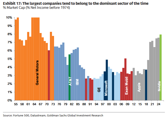 Goldman przypomina, że dominacja sektorów zmienia się falami - transport, energia, finanse, technologia. „Największa spółka indeksu zwykle należy do wiodącego sektora epoki”, ale rzadko utrzymuje tron na zawsze. To kolejny argument, by nie wpychać całego ryzyka do jednego koszyka.