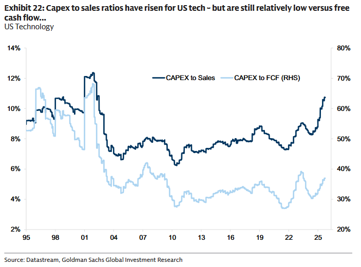„Wydatki inwestycyjne gwałtownie przyspieszyły od chwili pojawienia się ChatGPT” - czytamy. Jednocześnie kluczowa różnica vs lata 90.: „u dzisiejszych liderów większość capeksu finansuje wolna gotówka, a nie dług”. To bufor przeciw efektowi domina znanemu z wcześniejszych epizodów.