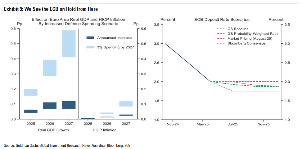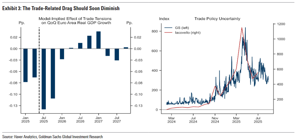 Kluczowy ciężar krótkoterminowy to handel. Goldman szacuje, że łączny „trade drag” sięga ok. 0,4% PKB strefy euro po ostatnim porozumieniu UE–USA - odczuwalny, ale przede wszystkim wygasający w drugiej połowie roku. W Niemczech do gry ma wejść fiskus: po „sprzątaniu” w komisji budżetowej 4 września budżet ma zostać zatwierdzony 18 września, co - licząc od IV kwartału - powinno przełożyć się na realny impuls i „ponad-konsensusowy” wzrost w 2026 r.