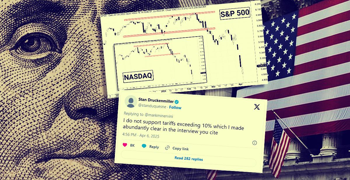 Do tej listy dołączył także legendarny inwestor Stan Druckenmiller. W rzadkim publicznym wpisie zaznaczył, że nie popiera żadnych taryf, które przekraczają poziom 10%, dając tym samym jasno do zrozumienia, że skala obecnych działań administracji jest nieakceptowalna nawet dla umiarkowanych głosów na rynku.