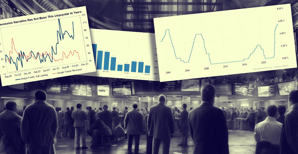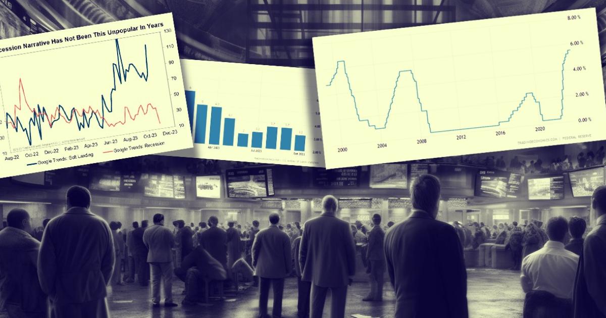 Główny nurt analiz ekonomicznych w połowie tego roku dominowały głosy o potencjalnym spowolnieniu tempa wzrostu gospodarczego, który, w połączeniu z niesłabnącą inflacją, mógłby nawet doprowadzić do stagflacji. W najgorszym przypadku analitycy ekonomiczni przewidywali nawet popadnięcie w recesję. Jednakże ostatnie tygodnie, w których dane pokazały zatrzymanie wzrostu inflacji i w efekcie skłoniły FED do wstrzymania cyklu podwyżek stóp procentowych, odmieniły nastawienie rynku.