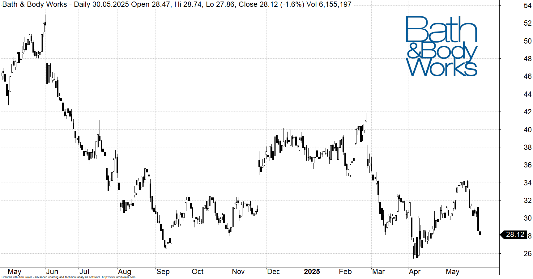 | Bath and Body works Inc. | 28,60 | -7,30% | 42,12 | 47,37% | 7,6 | 14 | NYSE |