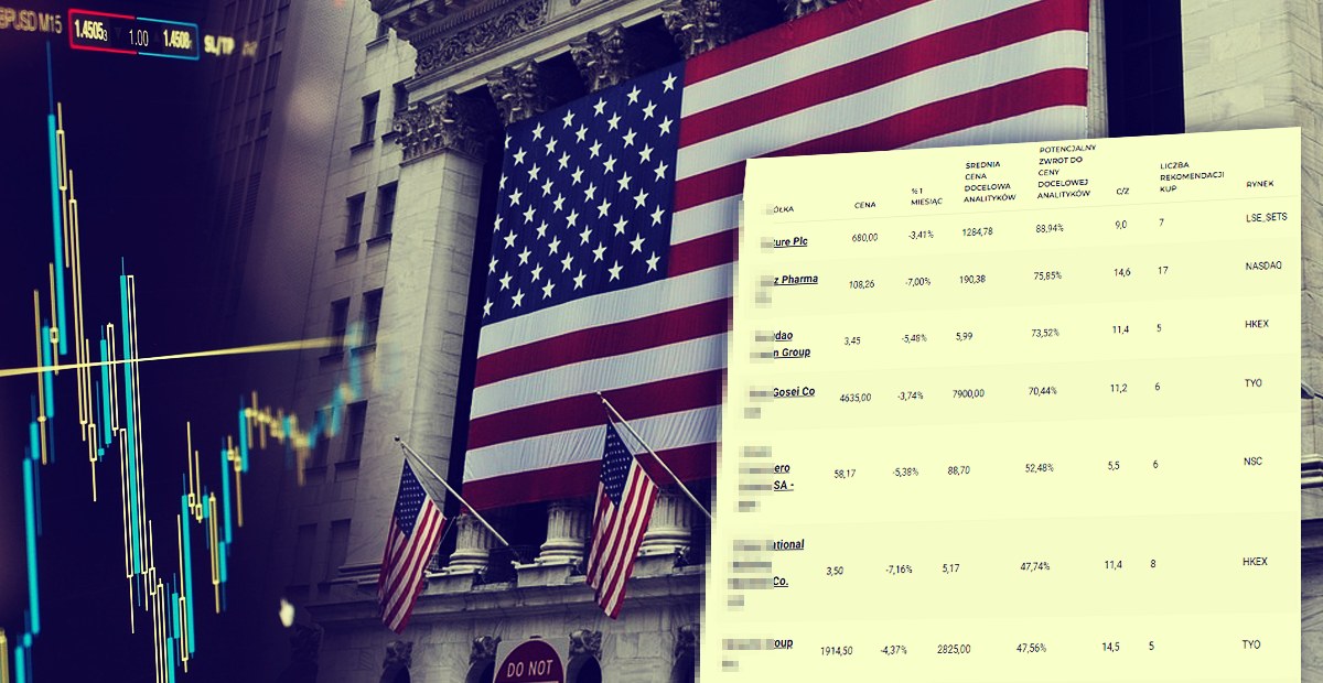 Na jej czele znalazła się brytyjska Future Plc, której kurs spadł o 3,4%, ale według analityków może wzrosnąć aż o 89%. Dalej są m.in. Jazz Pharmaceuticals z USA (+76% potencjału), chiński Tongdao Liepin Group (+74%) czy japoński Toyo Gosei (+70%). Co istotne, nie są to spekulacyjne bety, ale spółki zyskujące i wspierane przez konsensus analityków.