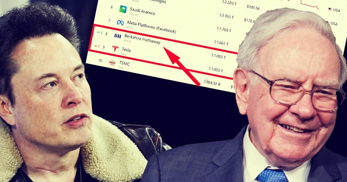 Akcje Berkshire Hathaway w poniedziałek wzrosły o 4,1%, co podniosło wartość rynkową firmy do około 1,07 biliona dolarów, według danych FactSet. Tymczasem akcje Tesli spadły o 2,2%, obniżając jej kapitalizację rynkową do 1,04 biliona dolarów. Jednakże trwa sesja i w trakcie pisania tego artykułu sytuacja dynamicznie się zmienia.