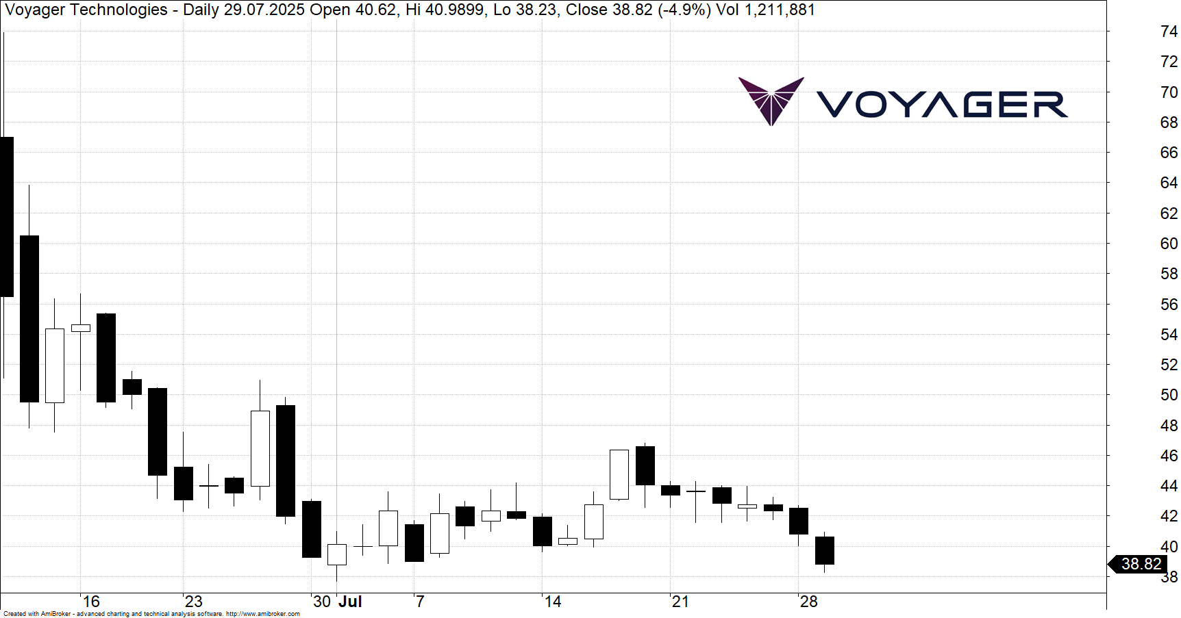 Wysokie oczekiwania wobec przyszłości Voyager oraz przewartościowanie akcji spowodowały, że nawet dobre wyniki nie zdołały utrzymać kursu na wcześniejszych poziomach. W efekcie akcje spółki doświadczyły dużej zmienności i znacznych spadków, które były wynikiem odpływu kapitału spekulacyjnego, realizacji zysków po debiucie oraz rosnącej niepewności co do szybkiego przełamania strat operacyjnych, mimo pozytywnych perspektyw rynkowych. Tymczasem debiutująca spółka Karman osiągnęła wzrost o 68,9 proc., ale podobnie jak Voyager, nie uniknęła zmienności i korekt.