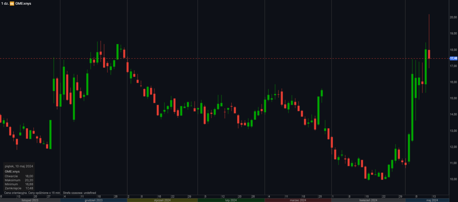 Akcje GameStop, niegdysiejszego króla memowych szaleństw z 2021 roku, notują imponujący wzrost o około 60% w maju. Powody tego gwałtownego skoku cen nie są do końca jasne, ale spekulacje i sentyment inwestorów znów biorą górę nad twardymi danymi.