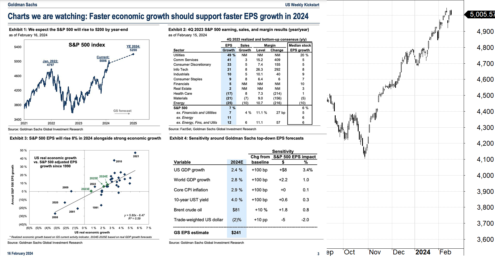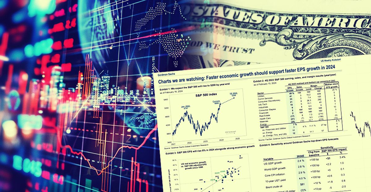W grudniu 2023 roku Goldman Sachs podniósł cel dla S&P 500 z 4 700 do 5 100 punktów. Produkt krajowy brutto USA wzrósł o 2,5% w 2023 roku.