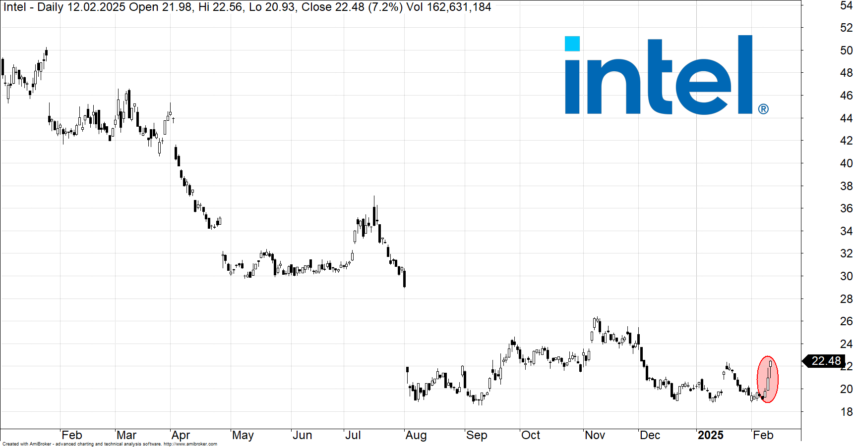 W środę akcje Intela podrożały o 7%, co przełożyło się na trzydniowy wzrost na poziomie 18%. Był to najlepszy taki wynik od 20 kwietnia 2001 roku, gdy papiery wartościowe firmy zyskały aż 24,5% – wynika z danych Dow Jones Market Data.