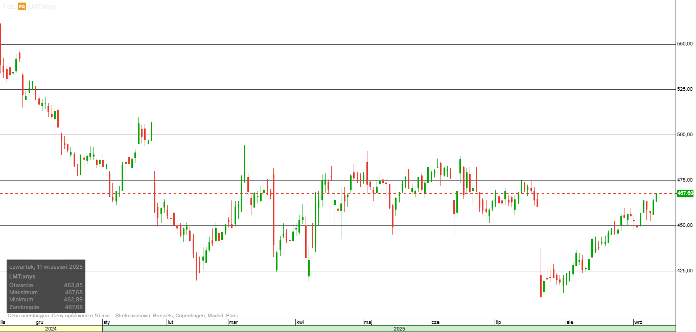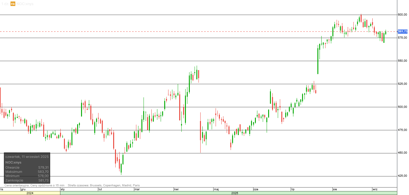 W II kw. 2025 spółka przyciągnęła $21,6 mld przychodów (+9% r/r), skorygowany EPS $1,56 (+11%) i marżę operacyjną 12,0%. Backlog to imponujące $236 mld, a guidance bez zmian: sprzedaż +7–9% i skorygowany EPS $6,00–6,20 na 2025. Innymi słowy - solidna trajektoria i duża widoczność.