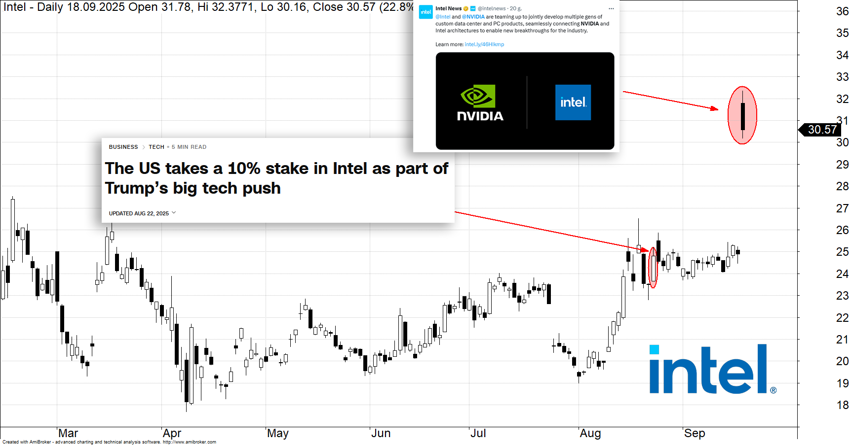 Intel skoczył o 24% do 30,76 USD po ogłoszeniu, że Nvidia zainwestuje 5 mld USD w akcje po 23,28 USD za sztukę i wejdzie z producentem procesorów w wieloletnią współpracę produktową. Nvidia urosła o 3,5%, a S&P 500 zyskał ok. 0,6%. Dla Intela to największy jednodniowy rajd od niemal pół wieku.W tekście wyjaśniam, co w praktyce oznacza ten sojusz i dlaczego wydarzył się właśnie teraz.