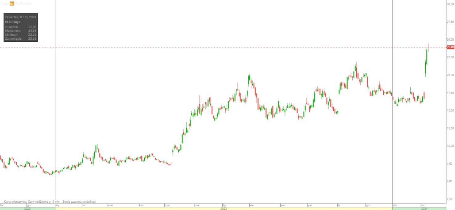 Na 2024 rok Palantir prognozuje przychody w wysokości od 2,652 mld USD do 2,668 mld USD, co przewyższa oczekiwania analityków na poziomie 2,643 mld USD. Firma spodziewa się również skorygowanego dochodu z działalności operacyjnej w wysokości od 834 mln USD do 850 mln USD, wyprzedzając konsensus na poziomie 747 mln USD.