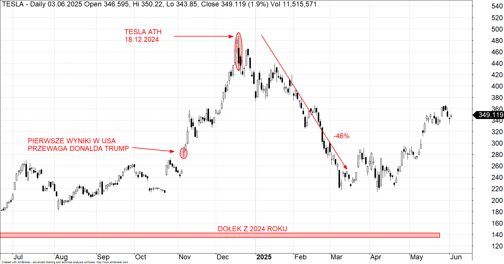 Mimo że akcje Tesli urosły o 46% od konferencji wynikowej z 22 kwietnia, to pierwszy dzień czerwca przyniósł... spadki. W poniedziałek kurs zamknął się 1,1% niżej, na poziomie 342,69 dol., podczas gdy indeksy S&P 500 i Dow Jones lekko zyskały. I choć dla Tesli to zaledwie korekta, to inwestorzy zaczynają zadawać sobie pytanie: czy rzeczywiście mamy do czynienia z przełomem, czy tylko z bardzo kosztownym testem?