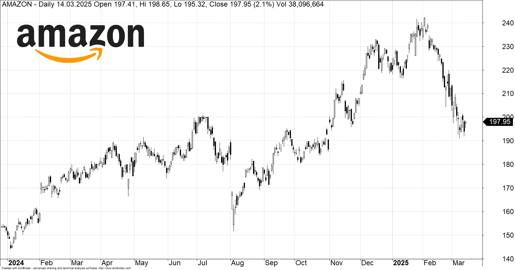 W tym kontekście warto zwrócić uwagę na Amazon, który po mocnym spadku wartości akcji (o 20% od rekordowego poziomu w lutym) staje się jednym z najciekawszych wyborów na rynku. Firma wyceniana jest obecnie na 25 razy prognozowane zyski w 2026 roku – to najniższa cena/zarobek w historii tego giganta. Amazon ma również kilka „asów w rękawie” – m.in. nową wersję Asystenta Alexa, czy też usługę satelitarnego internetu Project Kuiper, która ma szansę na rewolucję podobną do tej, jaką Elon Musk zapoczątkował z Starlinkiem.