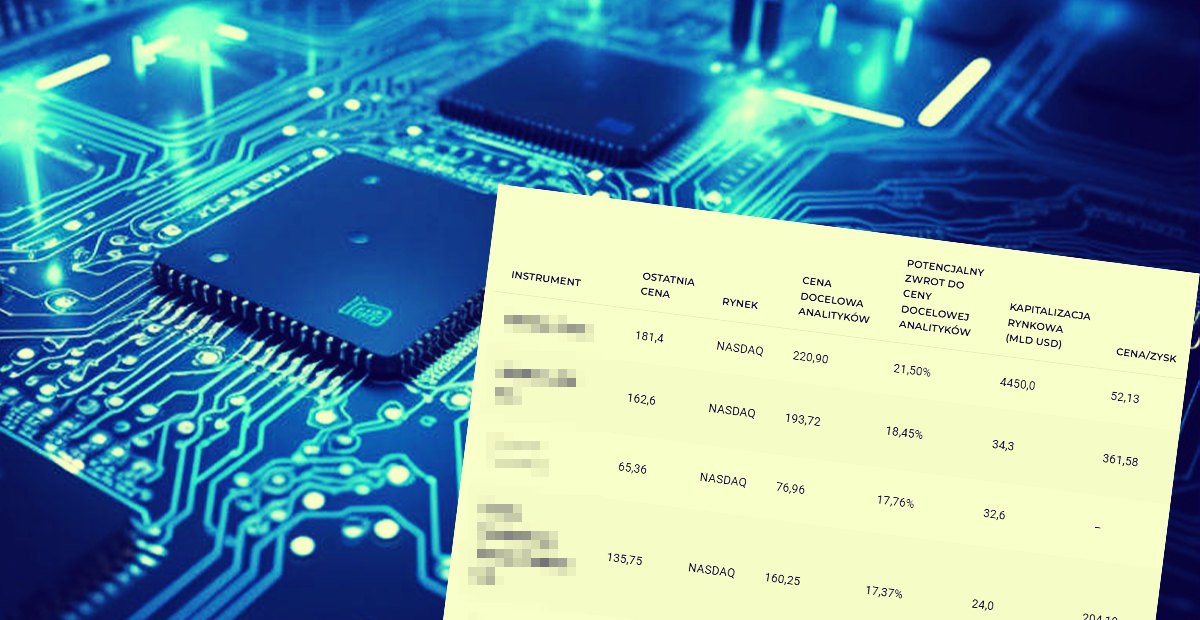 | Microchip Technology | 65,36 | NASDAQ | 76,96 | 17,76% | 32,6 | – | Przeważenie | 29 |