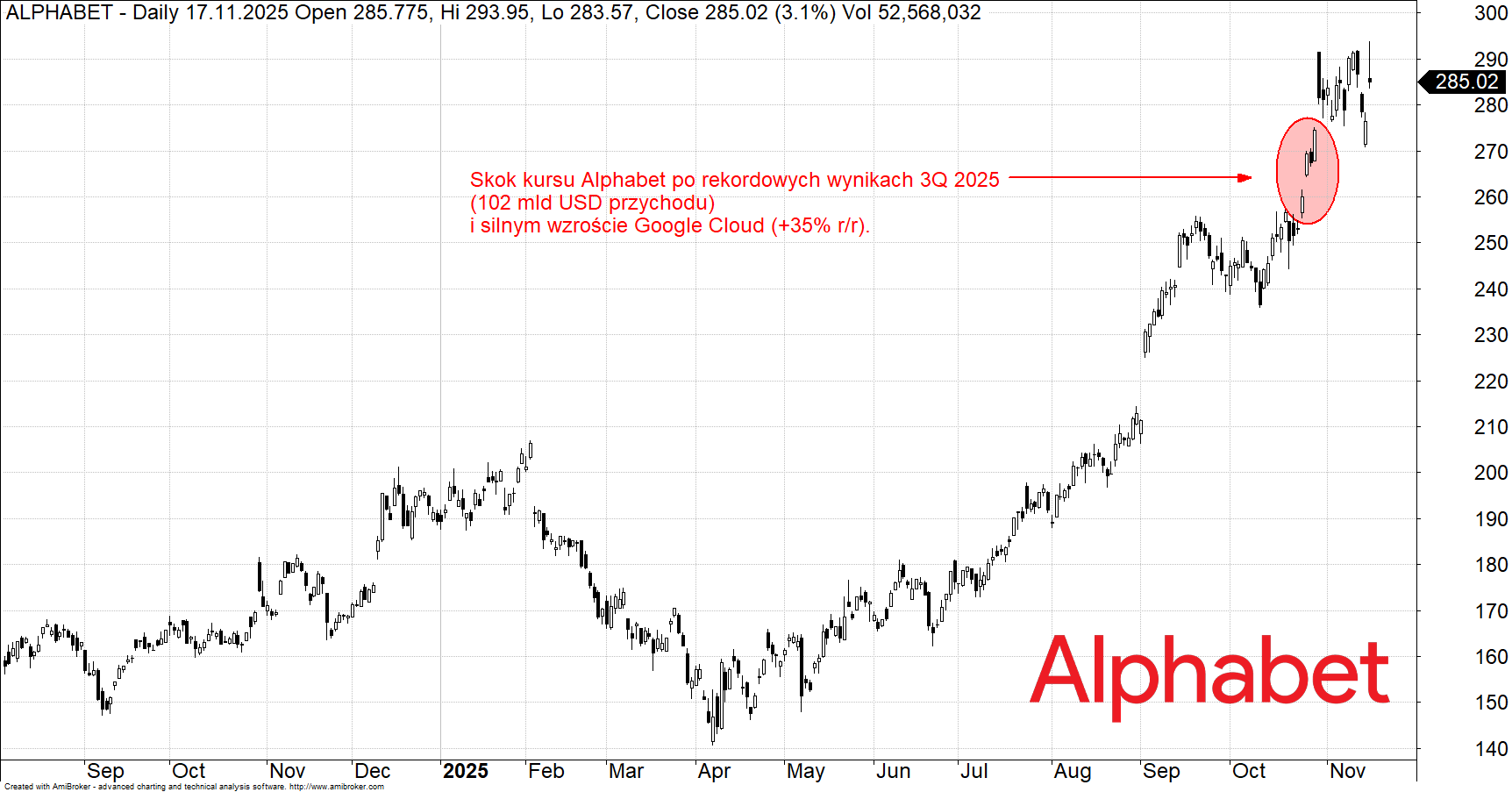 Patrząc na dzisiejszy kurs Alphabetu, wejście Berkshire wygląda całkiem rozsądnie. W trzecim kwartale średnia cena akcji wynosiła ok. 200 USD, przy przedziale od 175 do 255 USD. Kupowanie w takich widełkach, zanim rynek „dowiązał” kurs do okolic 289 USD po ogłoszeniu udziału Berkshire, wygląda jak klasyczne podejście: kupować wtedy, gdy entuzjazm nie jest jeszcze skrajny.