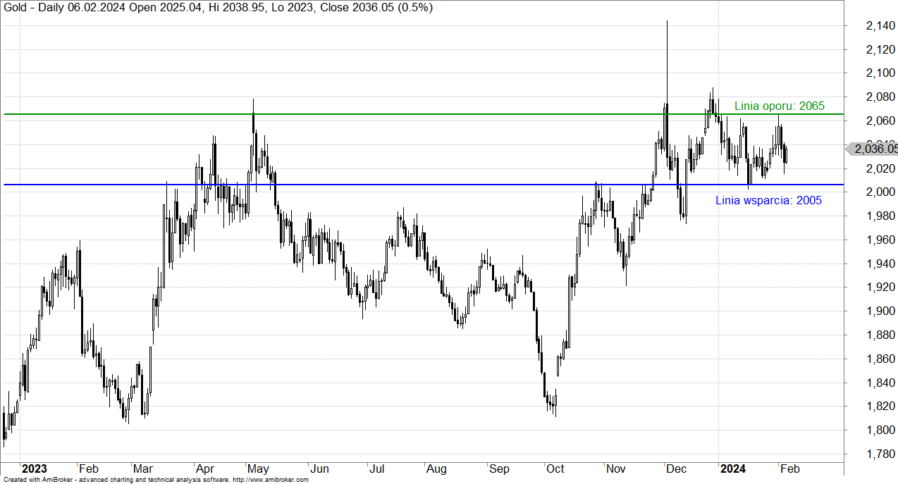 Obie granice przy takim otoczeniu rynkowym wydają się dość ciężkie do przebicia. Od dołu linię wsparcia wspiera wciąż wysoki popyt ze strony banków centralnych, rosnący popyt detaliczny w Chinach i Indiach, a także obawy odnośnie dalszego rozwoju sytuacji na Bliskim Wschodzie. Granicę oporu zaś formują odwracające się nastroje, co do szybkości zmiany polityki monetarnej przez FED.